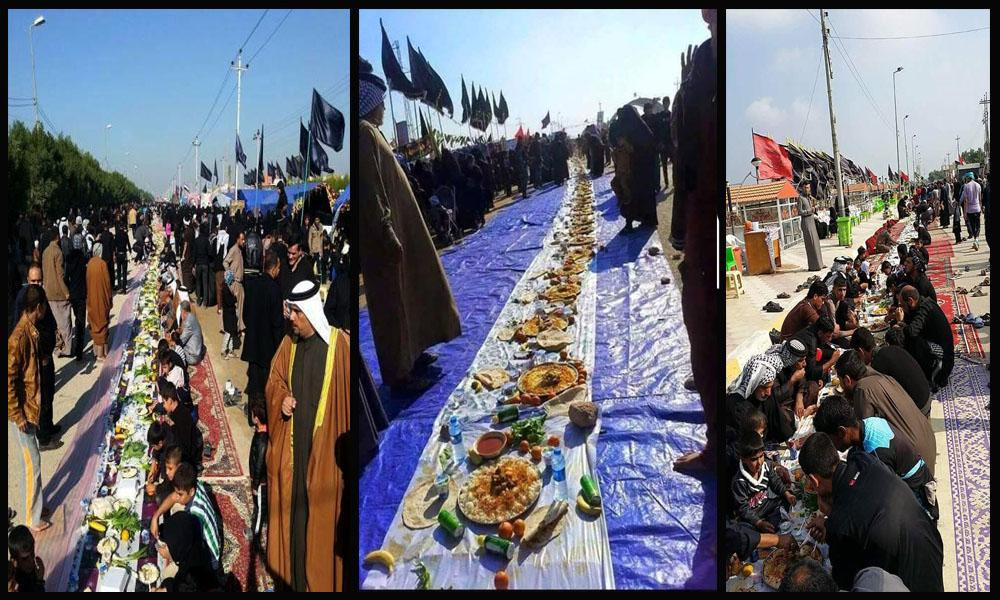 والشيعة أعلى الله برهانهم يوزعون الطعام عن الحسين عليه السلام لمحبة رسول الله اليه .