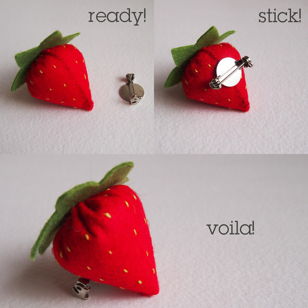 الصاق الورقة بالفراولة باستخدام غرزة واحدة نهاية كل طرف في الورقة ومن الأسفل