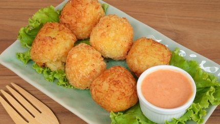 7- إقلي كرات البطاطس بالجبن حتى تصبح ذهبية اللون ومقرمشة.
