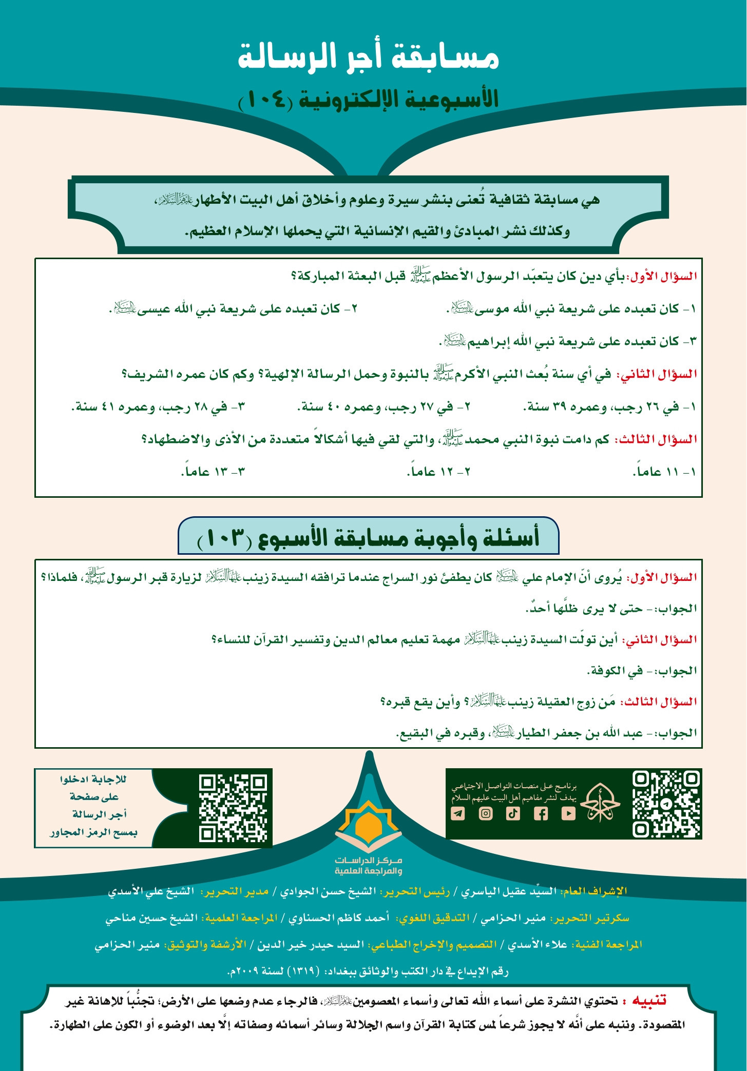 مسابقة أجر الرسالة الأسبوعية الإلكترونية (104)