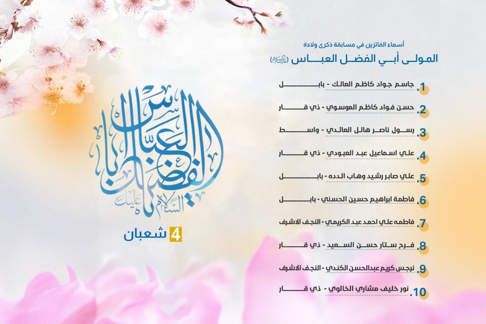 الفائزين في مسابقة ذكرى ولادة أبي الفضل العباس (عليه السلام)
