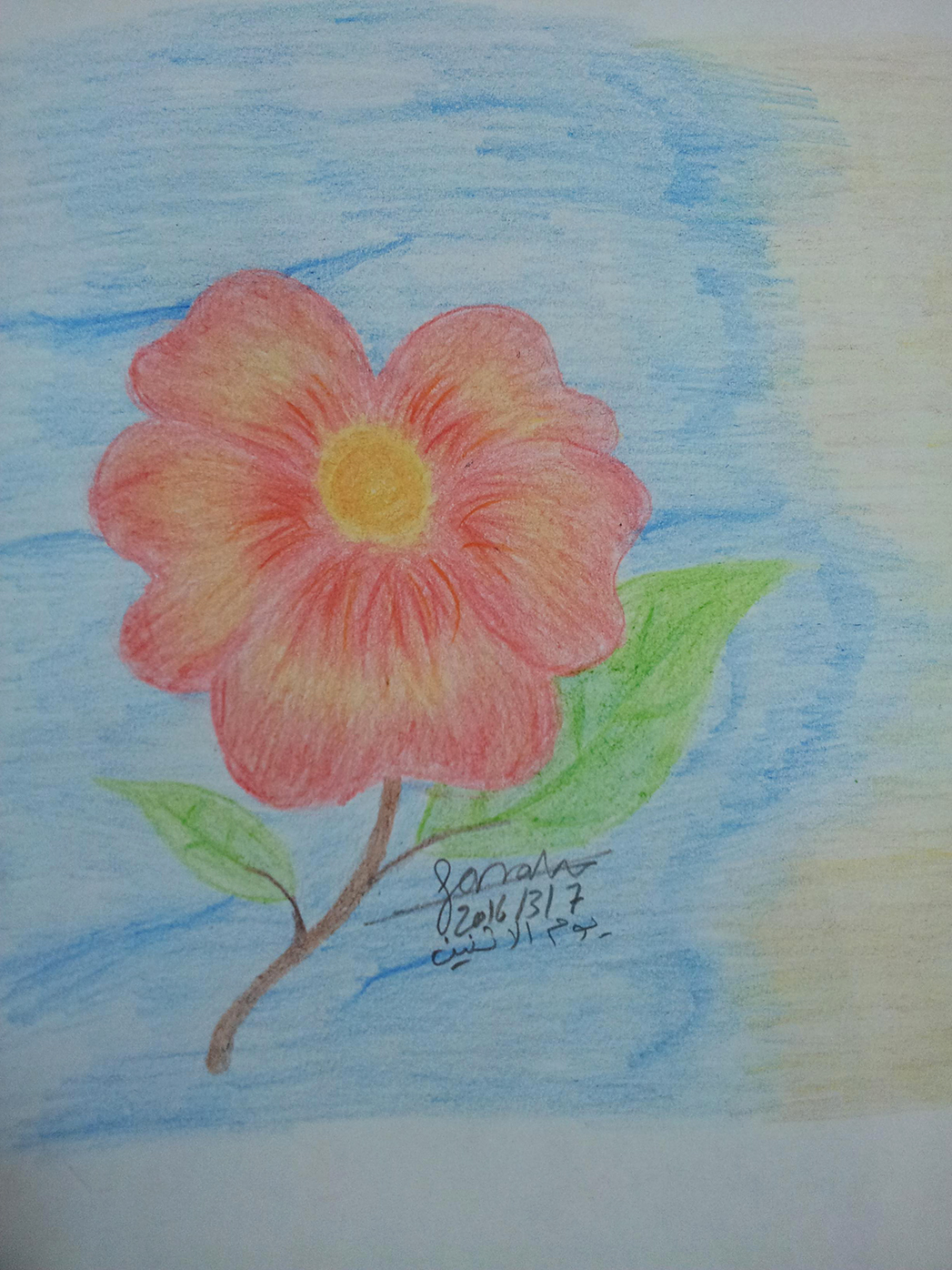 أخبريني نسيم : رسمة الوردة هذه هل رسمتها من الذاكرة أم كان لديك نموذج لوردة وأنت ترسمينها ؟