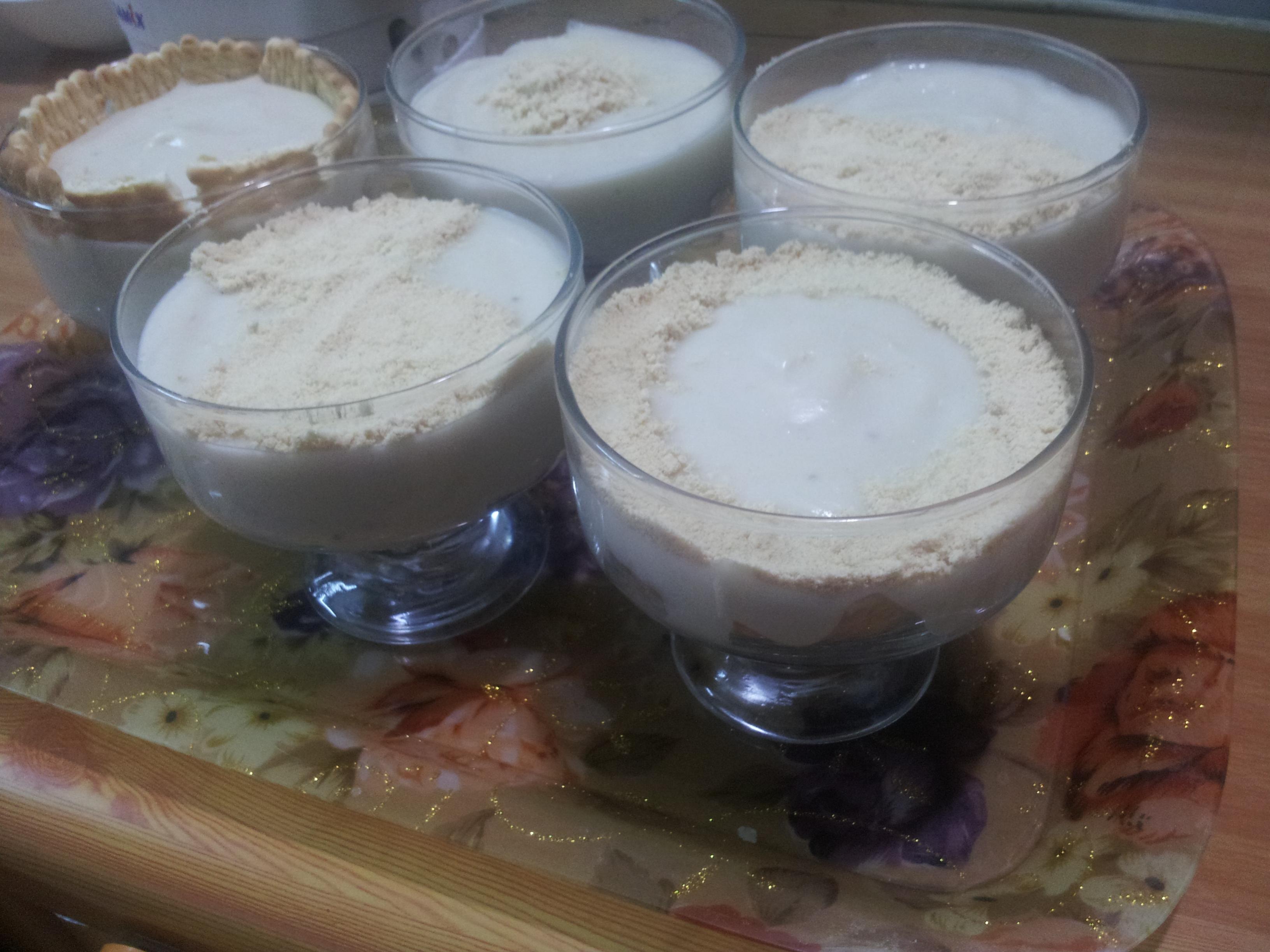 نخلط المواد جيدا وبعدها نضع عليه المحلبي السميك الموجود في القدر بعد ما اصبح دافئ ونخلط مجدداً حتى يتجانس الخليطان تماما ونسكبه على طبقه من البسكويت ونضعه في الثلاجه ويقدم بارداً والف عافيه وانشالله ينال رضاكم.