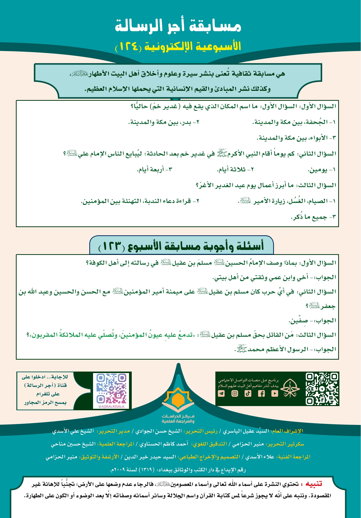 مسابقة أجر الرسالة الأسبوعية الإلكترونية (124)