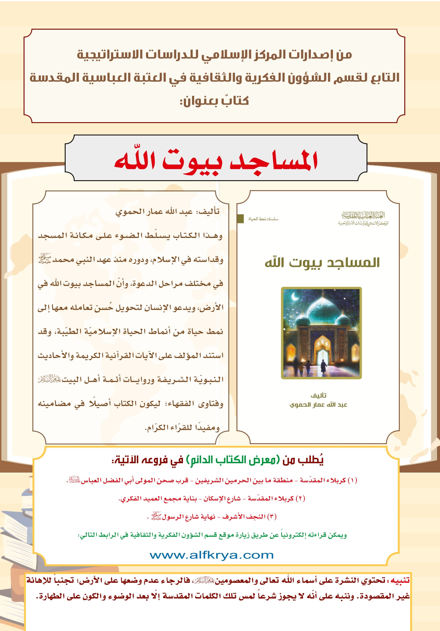 من إصدارات قسم الشؤون الفكرية والثقافية.. كتاب:المساجد بيوت الله/عبد الله عمار الحموي