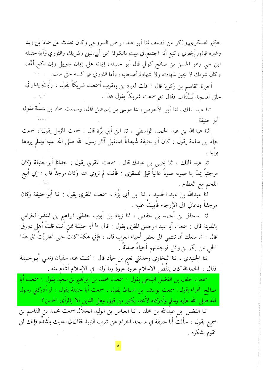 فامثال ابو حنيفة حينما يقول ذلك فلا شك ولاريب انه لم يمتثل لرسول الله باتباع الثقلين لذلك نرى نتيجة أفعاله