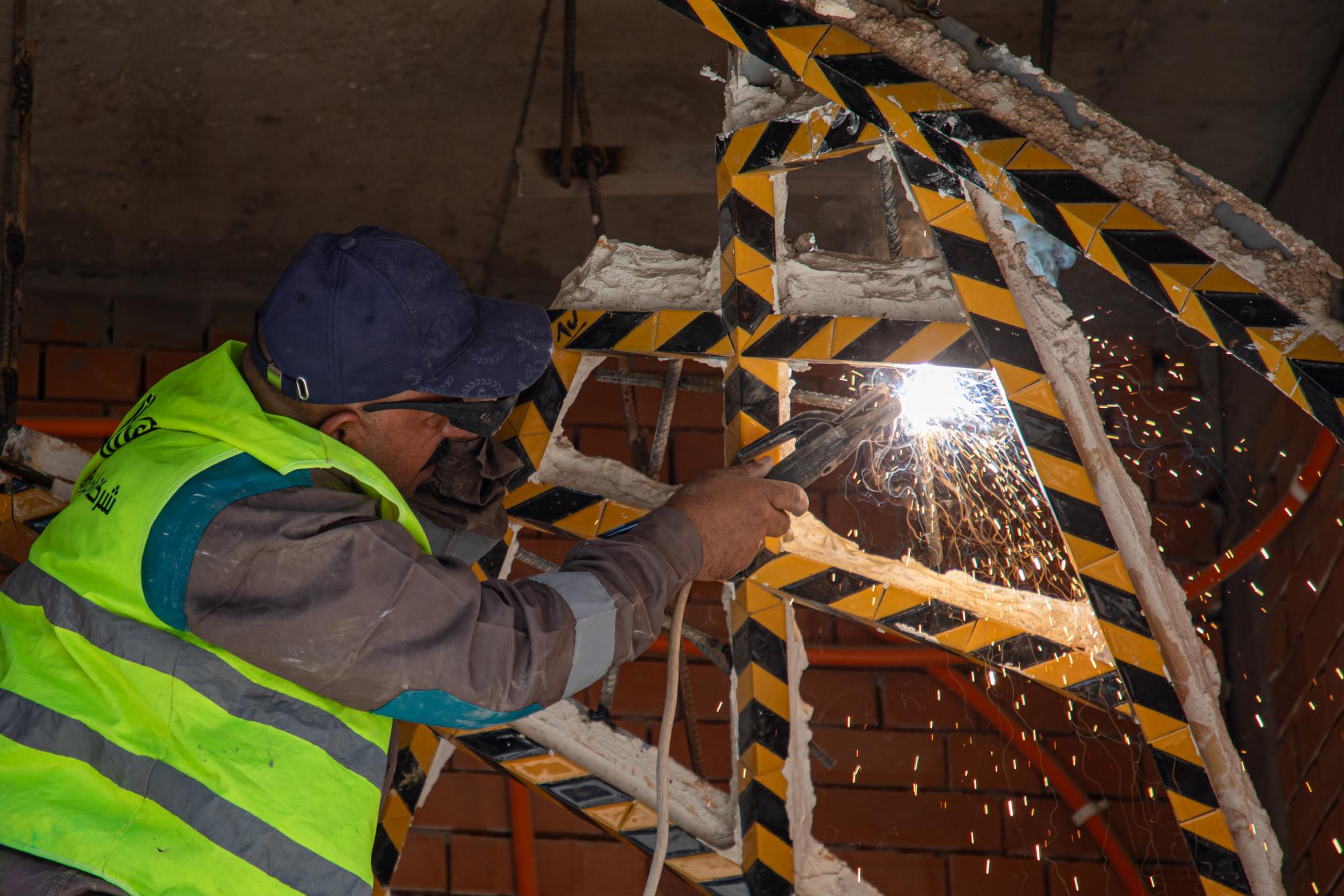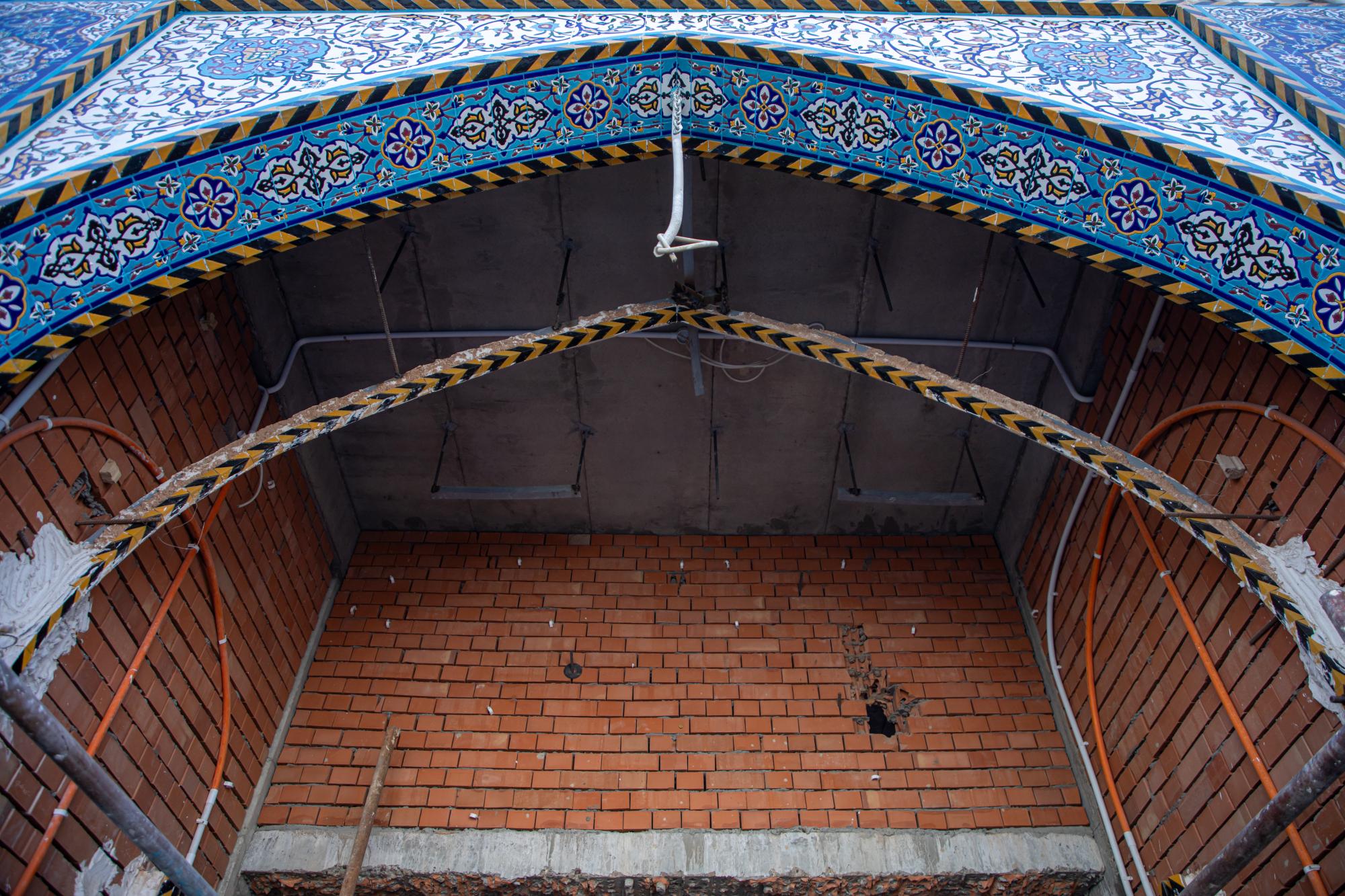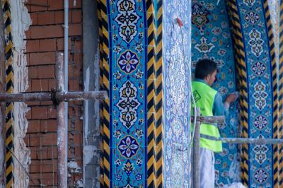 العتبة العباسية المقدسة تباشر تغليف أواوين صحن باب القبلة الكبير بالكاشي الكربلائي