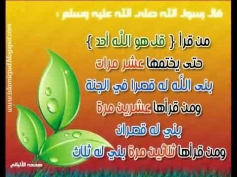و عن أنس عن النبي (صلى الله عليه وآله وسلّم) قال من قرأ قل هو الله أحد مرة بورك عليه فإن قرأها مرتين بورك عليه و على أهله فإن قرأها ثلاث مرات بورك عليه و على أهله و على جميع جيرانه فإن قرأها اثنتي عشرة مرة بني له اثنا عشر قصرا في الجنة فتقول الحفظة انطلقوا بنا ننظر إلى قصر أخينا فإن قرأها مائة مرة كفر عنه ذنوب خمس و عشرين سنة ما خلا الدماء و الأموال فإن قرأها أربعمائة كفر عنه ذنوب أربعمائة سنة فإن قرأها ألف مرة لم يمت حتى يرى مكانه من الجنة أو يرى له