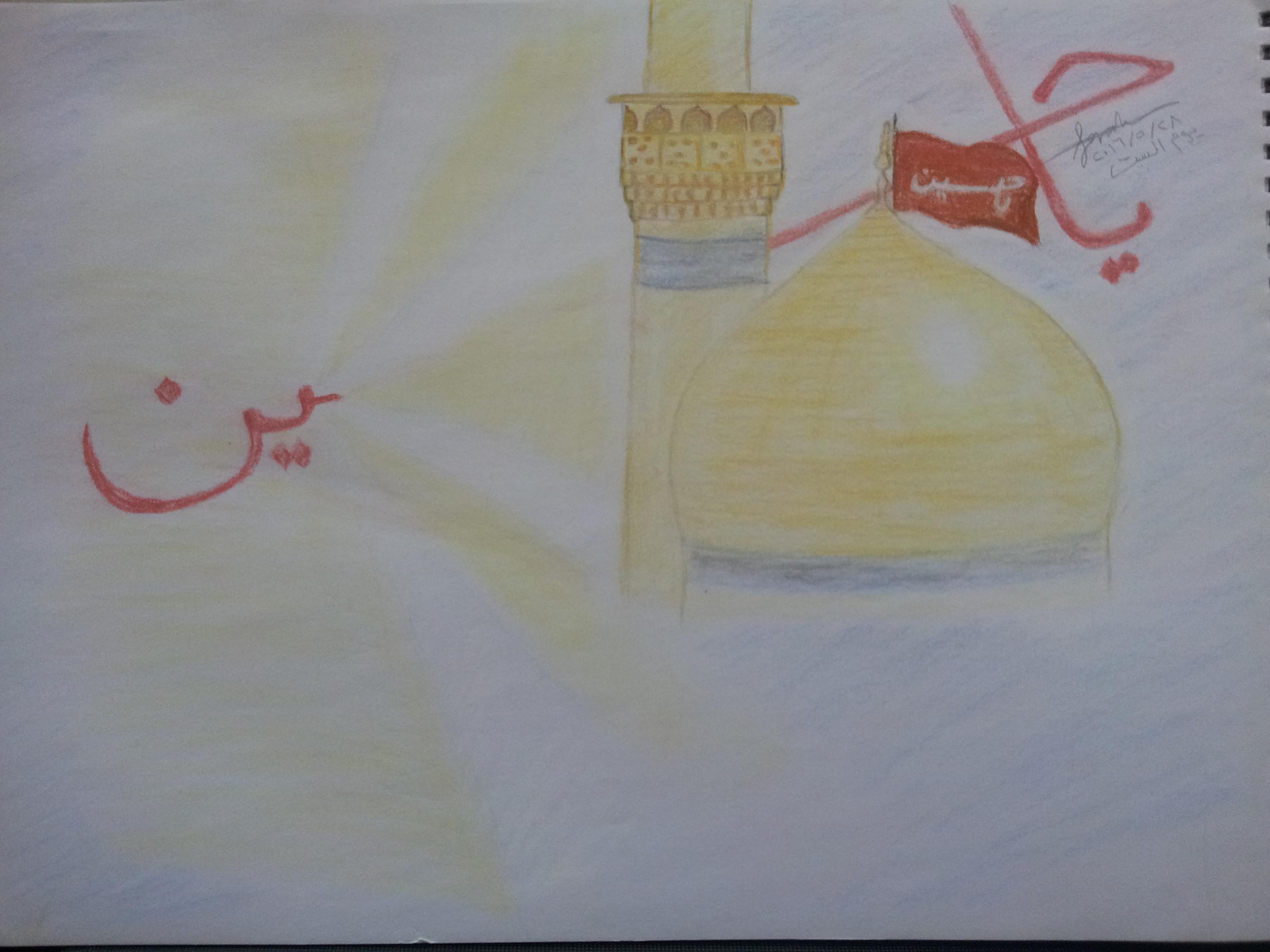 رسمة لقبة الامام الحسين عليه السلام بالوان الباستيل