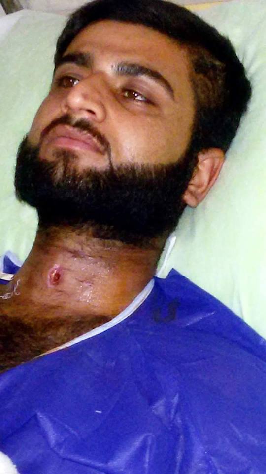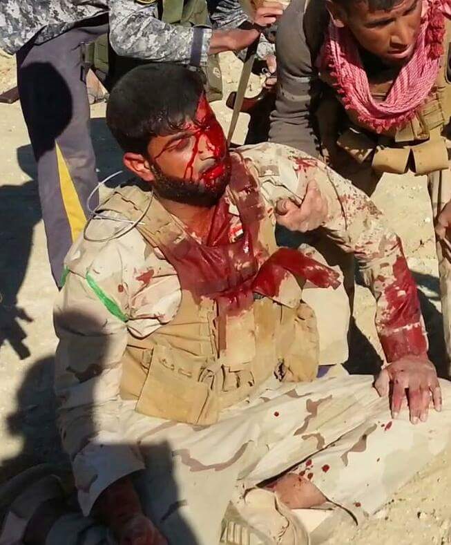 دون ان يستتر بأي شيء مما ادى الى اصابته اصابات بليغة كان اخطرها جرح لشظية في الرقبة .