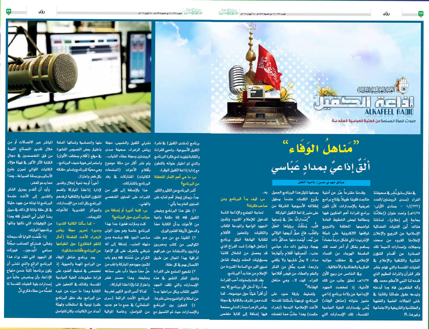• “مَناهِلُ الوَفَاء”.. ألَقٌ إذاعيٌ بِمِدادٍ عَبّاسي