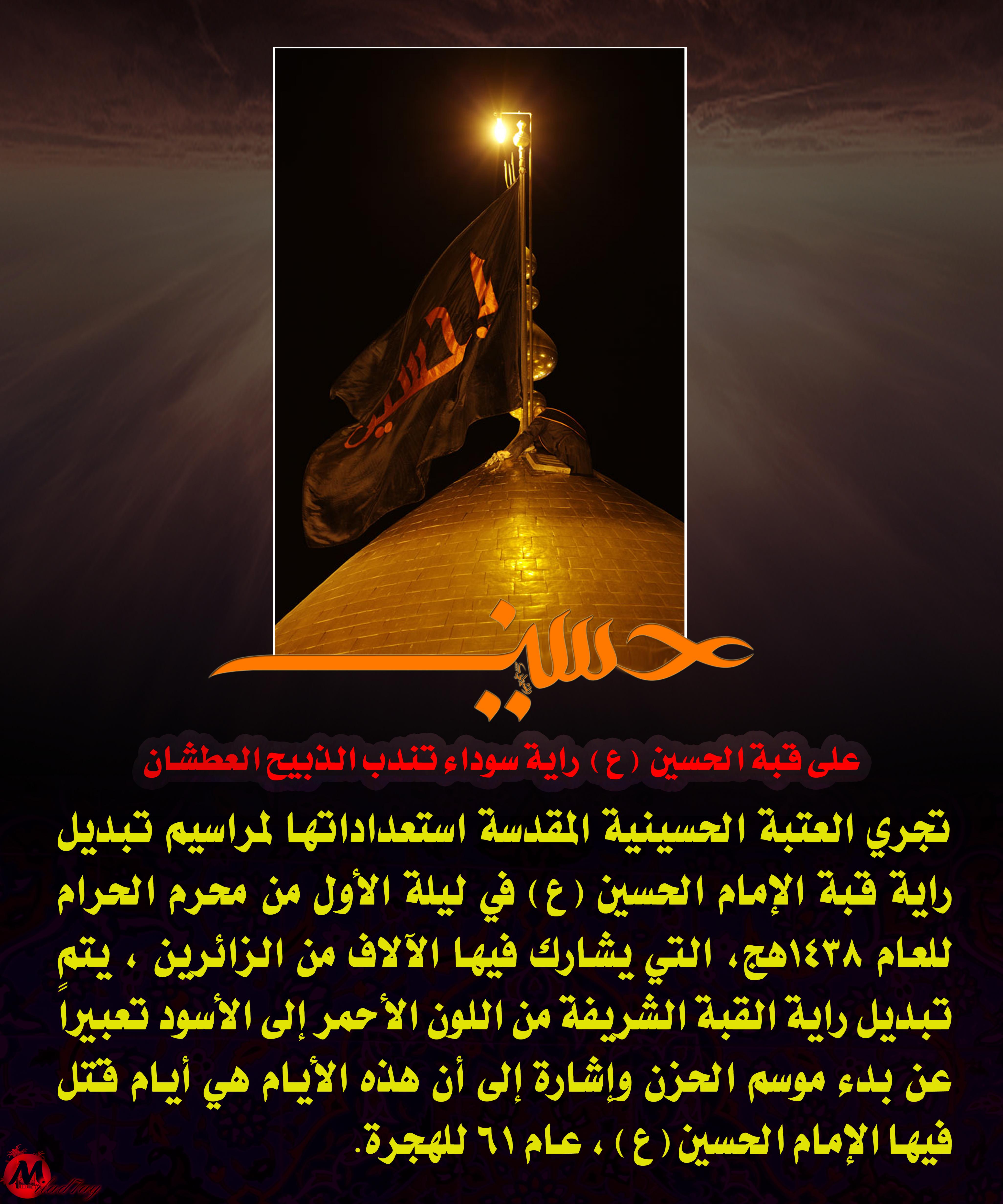 تبديل راية قبة مرقد الامام الحسين (ع) ليلة الاول من شهر محرم الحرام