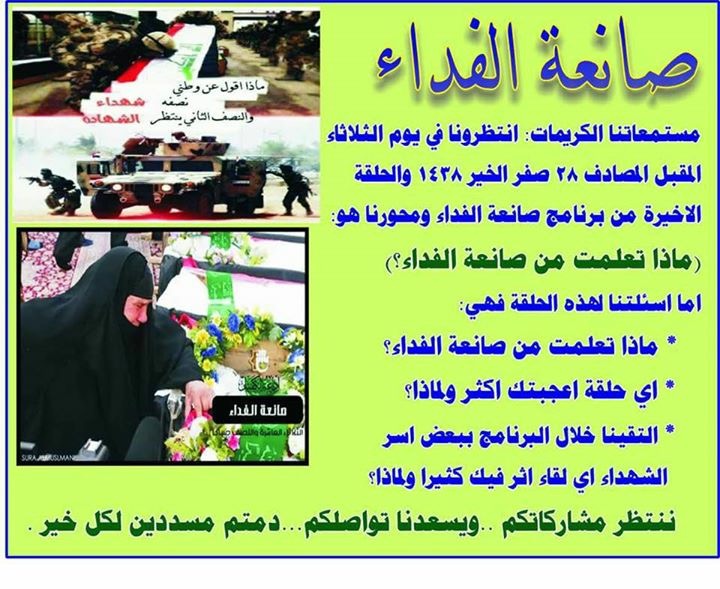 الحلقة الختامية لبرنامج صانعة الفداءالثلاثاء العاشرة والنصف صباحا