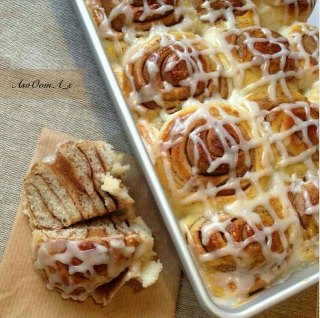 تفرد على شكل مستطيل و تدهن بالزبده وترش بالقرفه وتلف على شكل رول وتقطع قطع متساويه وترص في صينية مدهونه وتغطى وتترك لترتاح 15 دقيقه .