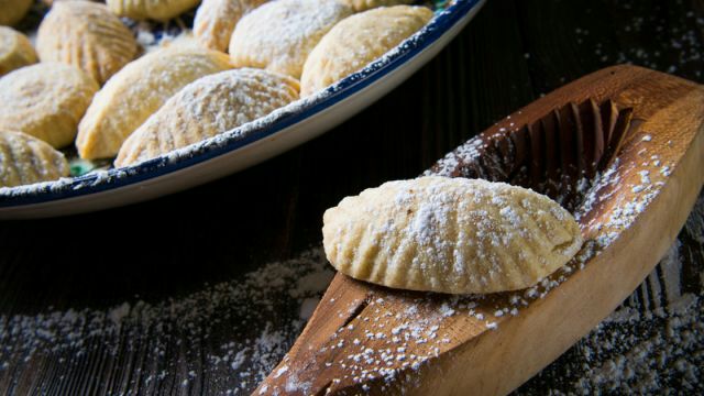 11- صفّي قطع المعمول في صينية غير لاصقة واخبزيها حتى يحمر الوجه قليلاً.
