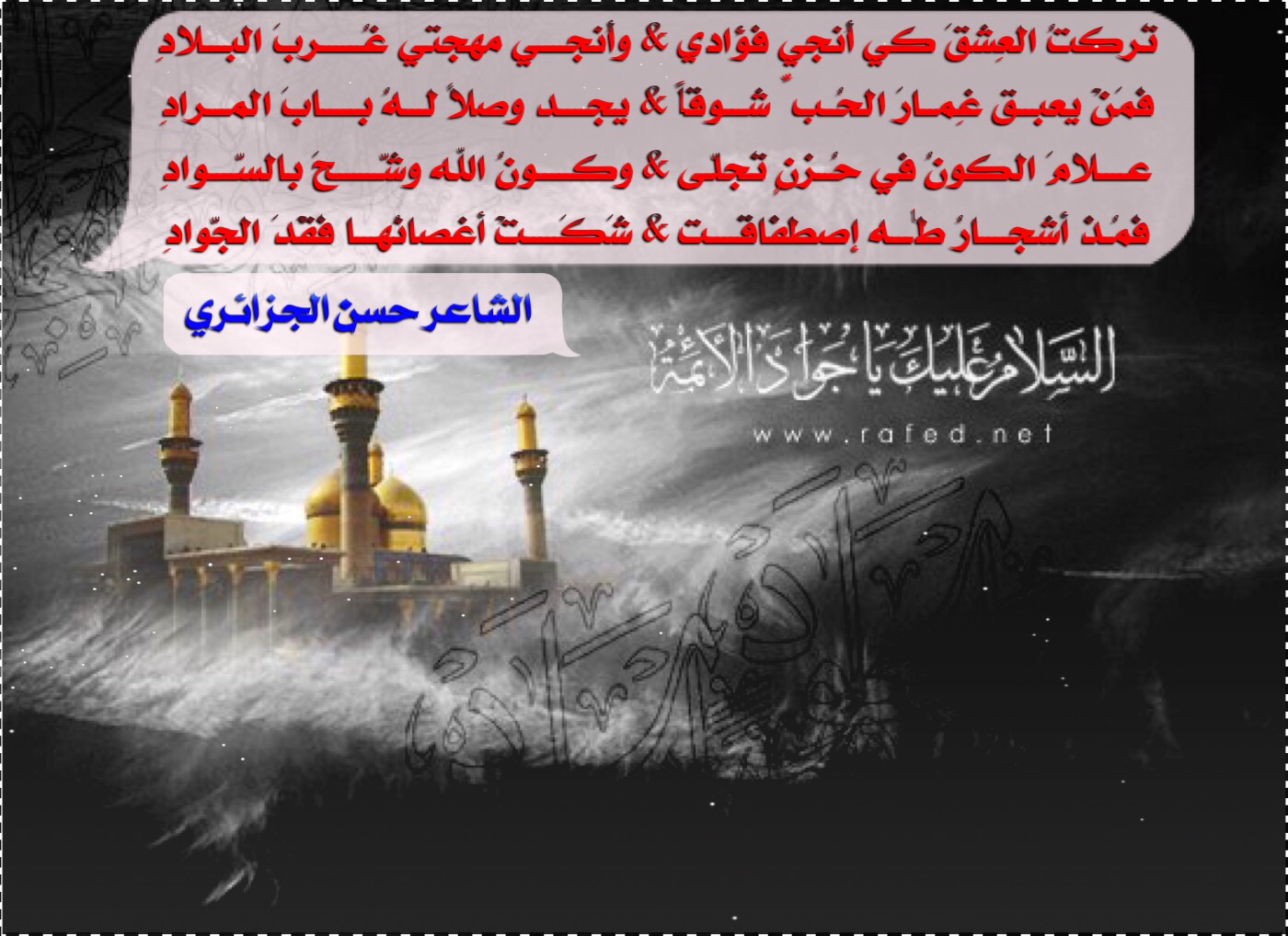 عــــلامَ الكونُ في حُــزنٍ تَجلّـى & وكـــــونُ الله وشّــــــحَ بالسّــــوادِ