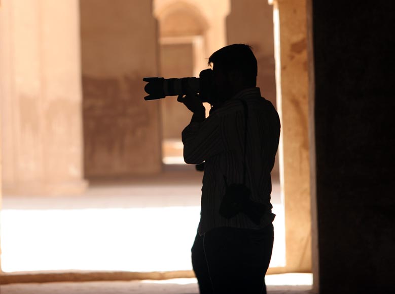 محمد صواف أثناء التصوير في حصن الاخيضر الأثري