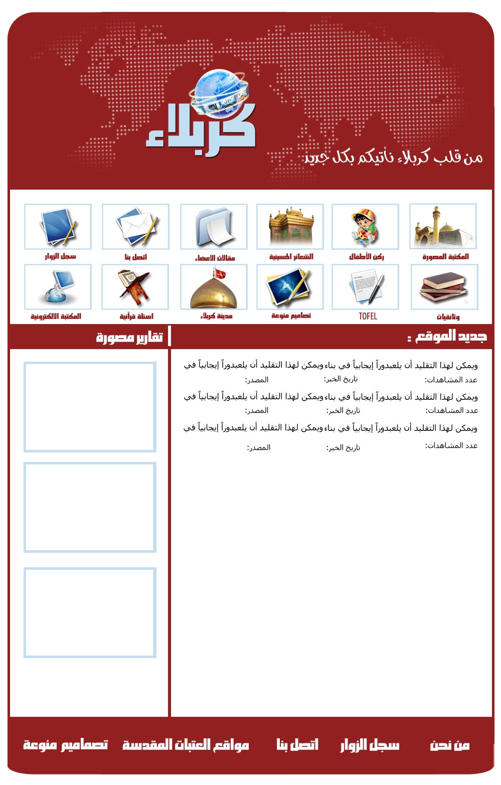 تصميم صفحة ويب قريبا على شبكة الانترنت خاصة بمدينة كربلاء قريبا على شبكة الانترنت