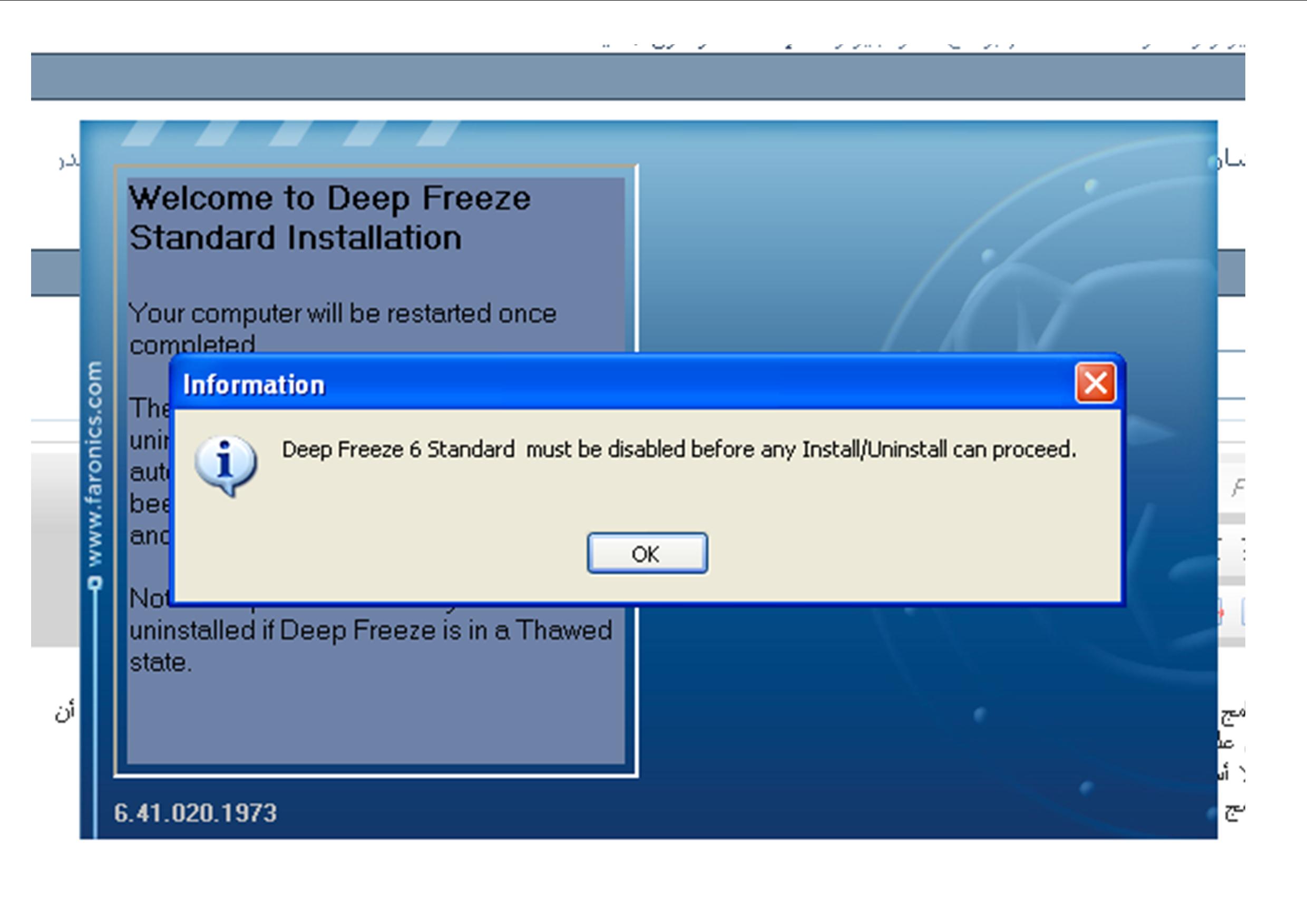 لقد تورطت في تنصيب برنامج Deep Freeze Standard for Windows v6.41 Setup لأجربه (وهو برنامج يقوم بحفظ إعدادات الحاسوب بحيث أن بعد إعادة