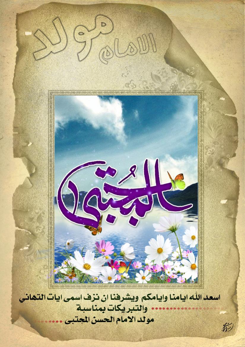 تصميم ولادة كريم اهل البيت الامام الحسن المجتبى ( عليه السلام ) . اخوكم حسنين النجفي