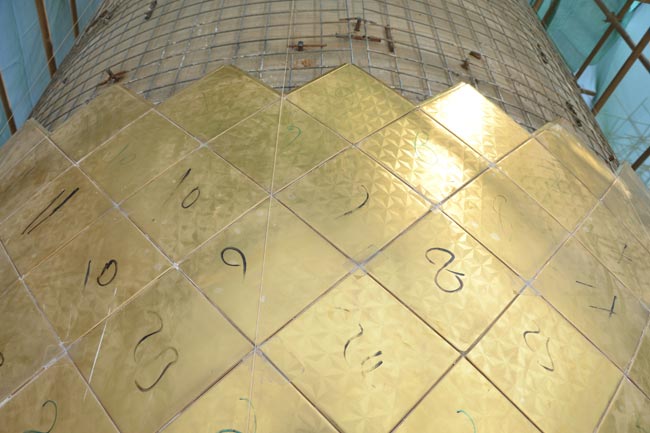 مضيفاً " لقد تم العمل ونصب البلاطات الذهبية في المنارة الغربية ووصل عمل
