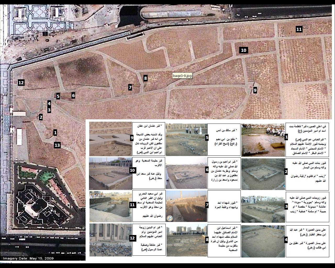 دمعة الأهااات تحرق الغيرهـ قلوب اللي تبيك..كل ماشافوا غلانـآ فى زيادهـ..! ماعليك من الكلام اللي يجيك..جمره العذال نهايتها رمادهـ ..! بسم الله الرحمن الرحيم وبه نستعين وصلى الله على محمد واله الطاهرين قد من الله علينا مأخراً بزيارة النبي الاكرم صلى الله عليه واله وسلم واهل بيته الاطهار في المدينة المنورة وقد تبين لنا خلال زيارة البقيع عدم وجود خريطة حديثة تبين مواضع القبور وكذلك لمسنا بعض تضارب الاقوال في مواضع هذه القبور مما دفعنا لتقصي ما يمكن من معلومات لرفع هذا التضارب. وارجوا من الله العلي العظيم والائمة الطاهرين التفضل علي وقبول هذا العمل القليل . وقد ارفقنا صورة بواسطة الاقمار الصناعية (google earth) لتبيين ماضع هذه القبور. ونذكر هنا القبور على حسب الترتيب في الصورة وسوف نوضح ماهو ثابت لاخلاف عليه وما عليه خلاف خلال العرض 1- قبور الائمة الاطهار عليه السلام (الامام الحسن المجتبي عليه السلام . الامام زين العابدين عليه السلام . الامام الباقر عليه السلام . الامام الصادق عليه السلام) (لا خلاف عليه) - قبر العباس بن عبد المطلب عم النبي صلى الله عليه واله وسلم في نفس بقعة قبور الائمة عليهم السلام (لا خلاف عليه) - قبر فاطمة بنت اسد ام امير المؤمنين عليهما السلام (وهو ثابت عندنا بالرويات ولكن عند بعض اهل السنة انه قبر فاطمة الزهراء عليه السلام) فقد ورد في مقاتل الطالبيين فلمّا دنا موت الامام الحسن عليه السلام أوصى لاخيه الحسين _ عليه السلام _ وقال: "اذا قضيت نحبي غسّلني وكفّني واحملني على سريري الى قبر جدّي رسول الله صلى الله عليه وآله وسلم ثمّ ردّني الى قبر جدّتي فاطمة بنت أسد فادفنّي هناك، وبالله أقسم عليك أن تهريق في امري محجمة دم" في رواية مضمونها انّه: رموا جثمان الإمام سلام الله عليه بالسهام حتى أخرج من جنازته سبعون سهماً، فأراد بنو هاشم المجادلة فقال الحسين سلام الله عليه: الله الله لا تضيّعوا وصيّة أخي فانّه أقسم عليّ إن أنا منعت من دفنه مع جدّه صلّى الله عليه وآله أن أخاصم فيه أحداً، ولولا وصيته لرأيتم كيف أدفنه في جنب النبي صلّى الله عليه وآله ورغمت معطسكم، فعدلوا به إلى البقيع فدفنوه جنب جدّته فاطمة بنت أسد (رضي الله عنها) وهاتين الروايتين تبينان ان الامام الحسن المجتبى دفن عند قبر جدته فاطمة بنت اسد عليها السلام 2- قبر بنات الرسول صلى الله عليه واله وسلم ( رقية وام كلثوم وزينب) عليهم السلام (لا خلاف عليه) 3- قبر زوجات النبي صلى الله عليه واله وسلم (ام سلمة , سودة , عائشة, حفصة, ميمونة, ام حبيبة, صفية, زينب, جريرة "جورية" ) (لا خلاف عليه) 4- قبر عقيل بن ابي طالب اخ الامام امير الؤمنين عليهما السلام وجنبه قبر عبدالله ابن جعفر الطيار وزوج الحوراء زينب عليها السلام (لا خلاف عليه) 5- قبر مالك ابن انس وجنب قبر شيخ القراء نافع ابن ابي رافع (لا خلاف عليه) 6- قبر ابراهيم ابن النبي الاكرم صلى الله عليه واله وسلم و وسلم وبقربه قبر عثمان بن مظعون و عبد الله بن مسعود واسعد بن زرارة (وهناك اشتباه في قبر عثمان بن مظعون رضي الله عنه وسوف نبين ذلك لاحقاً) 7- قبر شهاد احد وشهداء الحرة (لا خلاف عليه) 8 – قبر اسماعيل ابن الامام الصادق عليهما السلام (وكان من قبل خارج البقيع من الغرب وكان له مقام خاص قبل ان يتم هدمه من قبل الوهابيين ولكن خلال اعمال الحفر لتوسعة للبقيع تم العثور على جثته طرية لم تتاثر بالزمن وتم نقله الى البقيع ) وعلى ما يبدوا ان في موضع قبره الحالي اختلاف حيث ان البعض قال انه خلف شهداء الحرة من ناحية الشرق والبعض قال انه بالقرب من حليمة السعدية 9- قبر عثمان ابن عفان وهو الواقع حالياً في وسط البقيع وكان قبل التوسعة خارج البقيع في بقعة يقال لها "حش كوكب" وقد اشتبه بعض الشيعة في كونه قبر عثمان ابن مظعون ولكن القرائن والرويات تدل على ان قبره جنب قبر ابراهيم ابن النبي صلى الله عليه واله وسلم حيث ان هذا القبر في الاساس كانت خارج البقيع والمعروف ان عثمان ابن مظعون من اول من دفن في البقيع في زمن النبي الاكرم ص