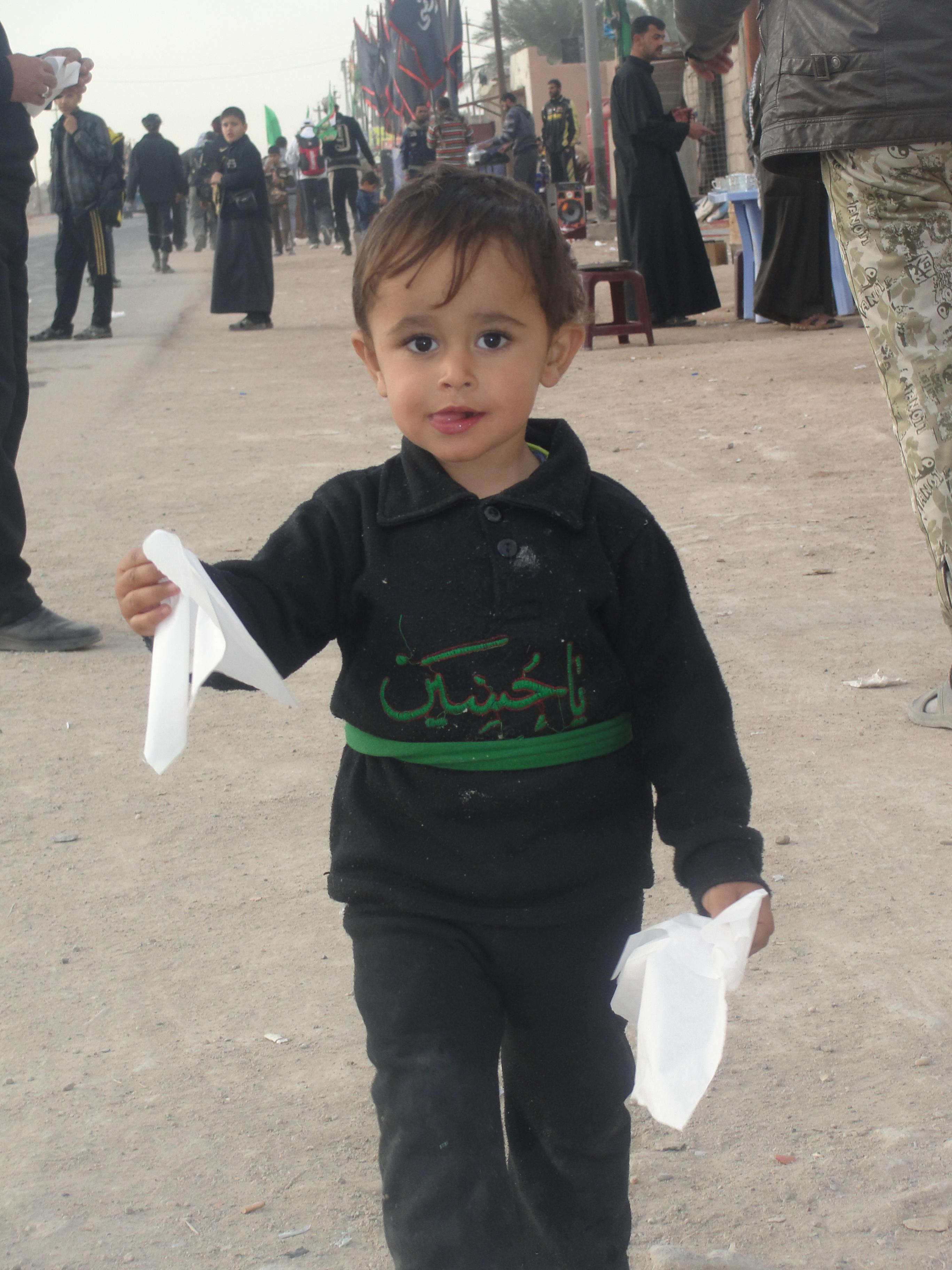 هذه صور لزوار ابي عبدالله الحسين (ع) من البصرة احداها لاصغر خدام زوار ابي عبدالله واخرى لشرطة البصرة الابطال وهم يقومون بخدمة الزوار
