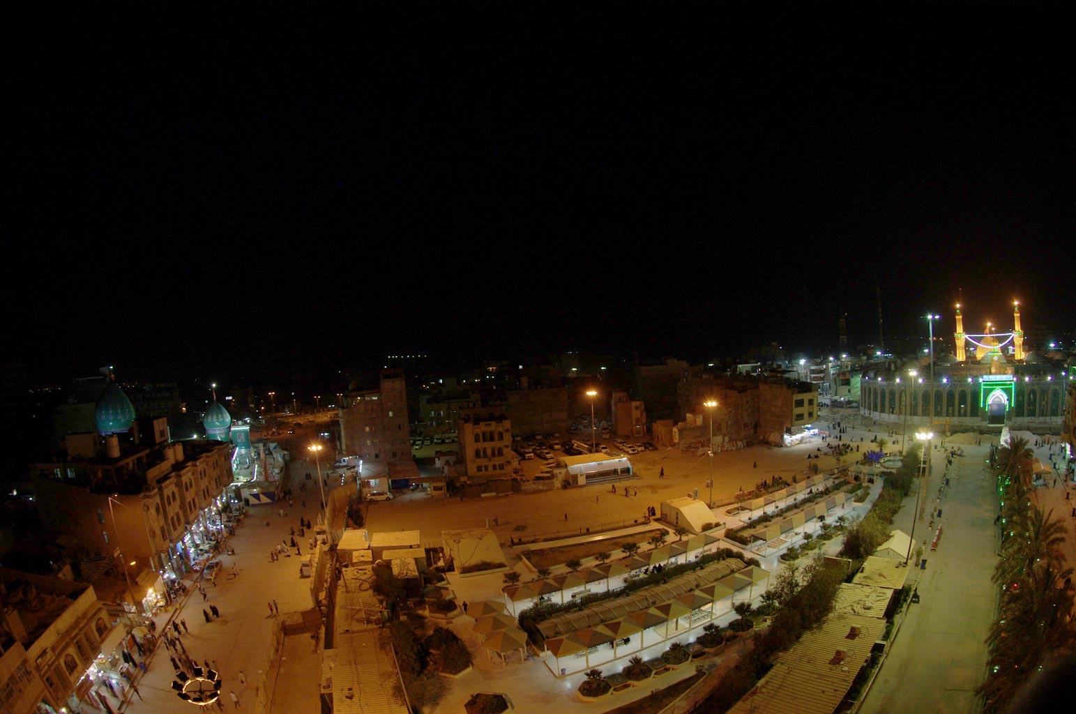 صورة حديثة يظهر فيها حرم الامام الحسين عليه السلام والمخيم الحسيني
