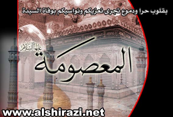 كان وفاة فاطمة المعصومة إبنة الإمام موسى بن جعفر عليه السلام في اليوم العاشر من شهر ربيع الثاني سنة 201هـ في مدينة قم المقدسة، وكان عمرها عليها السلام لا يتجاوز ثمانية وعشرين سنة كما ورد في الرويات، وما مر عليها في هذه الفترة القصيرة من عمرها إلا المآسي والأحزان كعمتها عقيلة بني هاشم زينب الكبرى عليها السلام، وأنها ما فتحت عيناها على الحياة إلا ورأت أبيها في السجن، ولقت مضايقات وظلم العباسيين على العلويين وأولاد رسول الله صلى الله عليه وآله