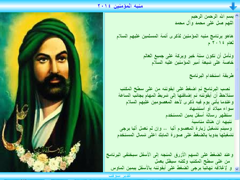 كليك يمين عليها واختر اغلاق وافتح نافذة البرنامج الأصلية تجد فيها ملخص لسيرة المعصوم صاحب المناسبة