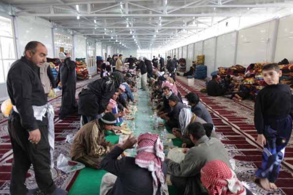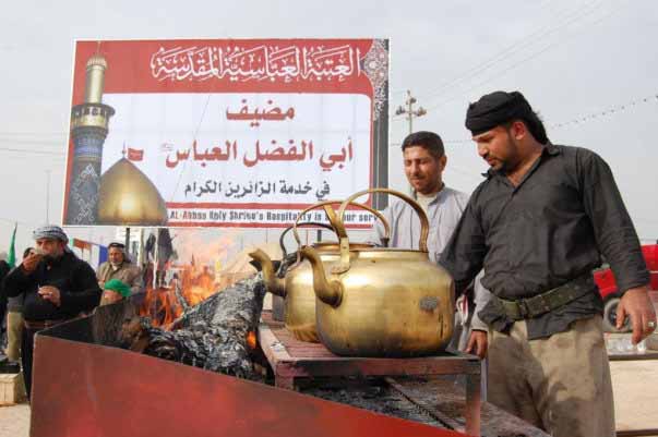 يعملون بلا هوادة وأنفاس الكفيل تزيدهم طاقة لا تنضب، البعض ينشر من كفيه رغيف خبز يعجنه بماء الولاء لسيد الشهداء عليه السلام، والبعض يفتل من زنديه حبالا تجر أكياس الطحين المغلف بحب الكفيل قمر بني هاشم، وبعضهم يشعل من دموعه النار تحت القدور بركة يواسي بها العقيلة زينب عليها السلام، هؤلاء هم منتسبو قسم المضيف في العتبة العباسية المقدسة كما وجدناهم أثناء تجوالنا في أروقة ووحدات المضيف، وهم يوزعون وجبات الطعام على زائري أبي عبد الله الحسين عليه السلام في ذكرى أربعينه هذا العام.
