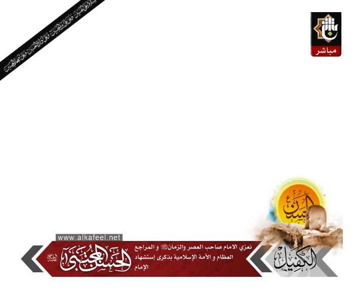 اعرض لكم تصميم بنر خاص بمناسبة استشهاد الامام الحسن المجتبى عليه السلام لواجة البث المباشر لموقع الكفيل