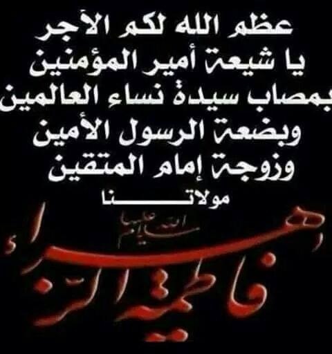 نرفع أحر آيات التعازي والمواساة لمقام سيدي ومولاي صاحب العصر والزمان عجل الله فرجه الشريف و إلى مراجعنا العظام و إلى جميع الأخوة والأخوات الأعضاء في منتدى الكفيل والى الشيعة في العالم وبالأخص شيعة الزهراء عليها السلام في ذكرى أستشهاد مولاتنا الطاهرة الزكية والبضعة الأبية سيدتنا خيرة نساء العالمين من الأولين والأخرين أم أبيها فاطمة الزهراء عليها السلام وعلى أبيها وبعلها وبنيها والسر المستودع فيها