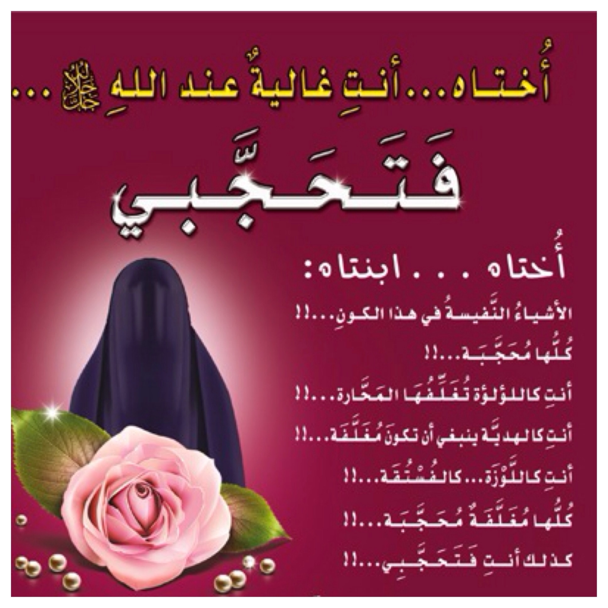 وتبقى الفتاة المحتشمة والملتزمة بتعاليم الاسلام كالجوهرة والكل يتمنى ان يحضى بها
