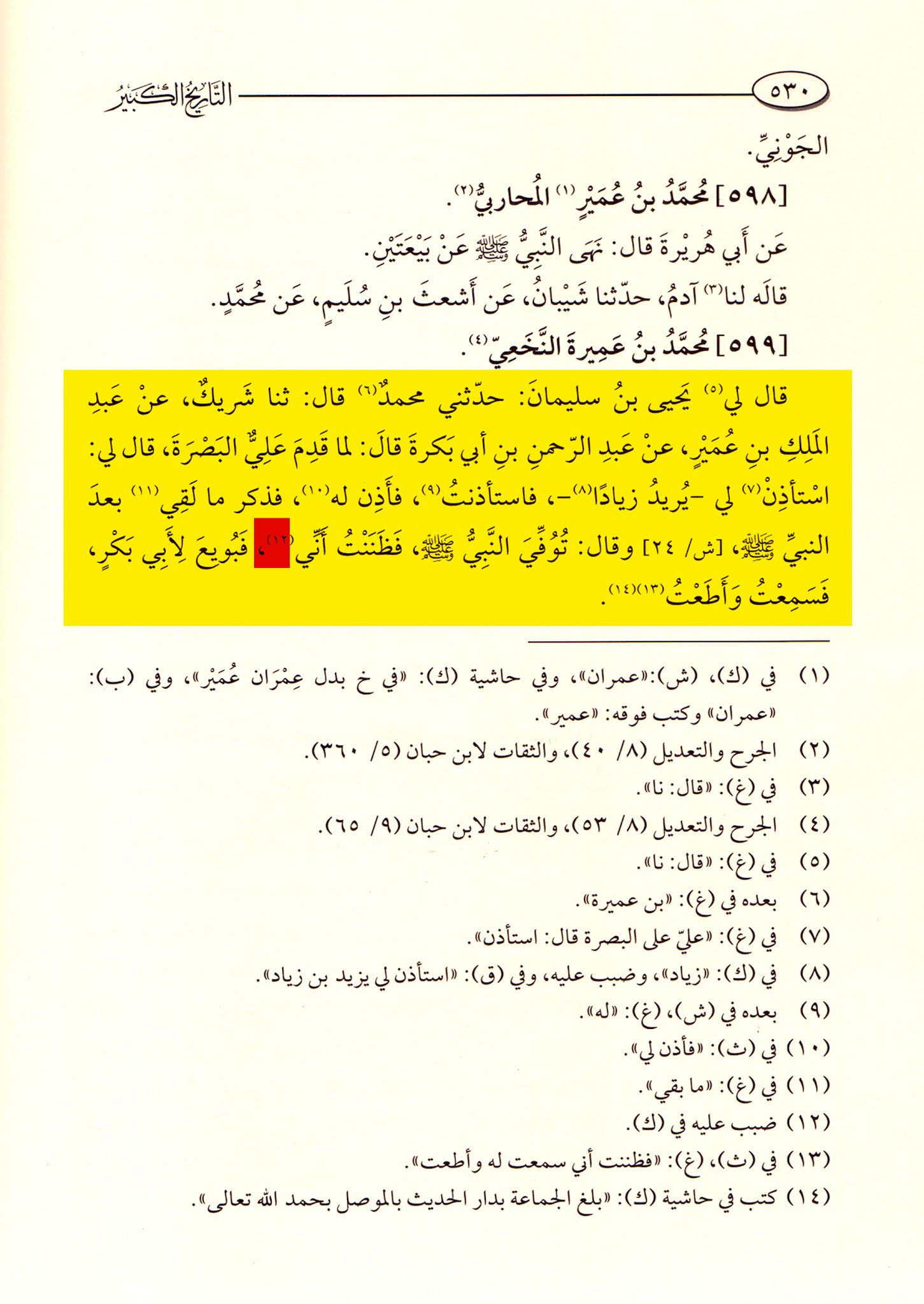 الرواية في كتاب (التاريخ الكبير) للبخاري (بعد التحريف)