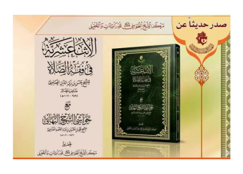 صدَرَ حديثاً عن مركز الشيخ الطوسي(قدّس سرّه) للدّراسات والتحقيق الكائن في النجف الأشرف، والتابع لقسم الشؤون الفكريّة والثقافيّة في العتبة العبّاسية المقدّسة، كتاب (الاِثنا عشريّة في فقه الصلاة للشيخ حسن صاحب المعالم مع حواشي الشيخ البهائيّ).