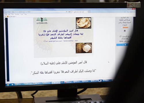 أقام قسم مكتبة السيّدة أمّ البنين (عليها السلام) النسويّة في منتدى الكفيل العالميّ جلسة نقاشيّة بعنوان: (أطراف النِعم)، تأسياً بحديث أمير المؤمنين الإمام عليّ (عليه السلام): " إذا وصلت إليكم أطراف النعم فلا تنفّروا أقصاها بقلّة الشكر". المصدر: عيون الحكم والمواعظ ص 133 ، خلال شهر رجب الاصب، وقد تناولت الجلسة كيفيّة الشكر بشكل عمليّ عِبر بيان أهميّة نعمتين من نِعم الله تعالى وكيفيّة الحفاظ عليهما، وهاتان النعمتان هما من مقوّمات الحياة الضروريّة، أي الطعام والماء، وإهدارهما معناه إهداراً لأهمّ أسس الحياة الطبيعيّة، ومن مصاديق حفظ النعمة هو الحفاظ عليها باحترامها.