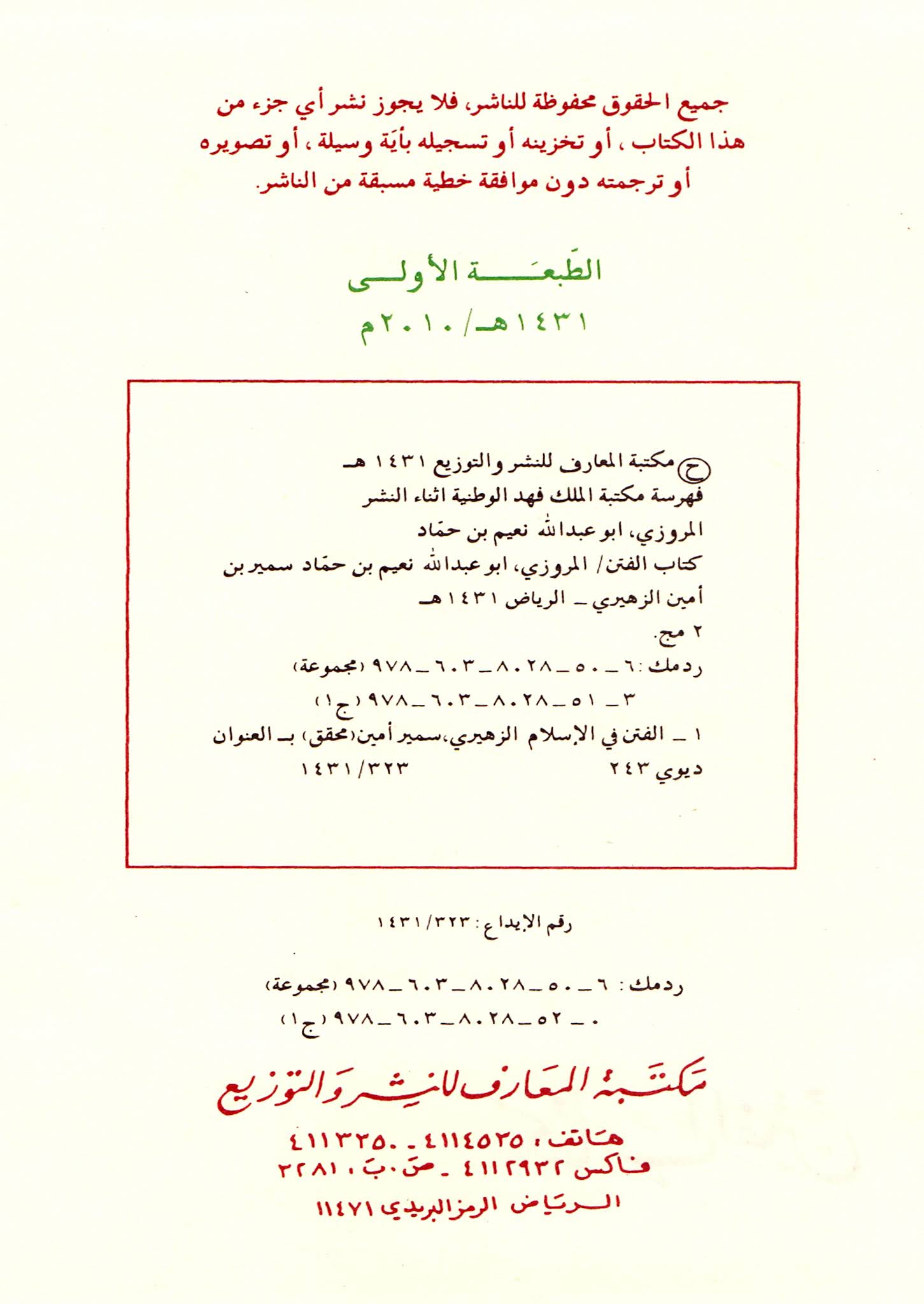 2. رواية نعيم بن حماد (المتوفى سنة 229 هجريّة).