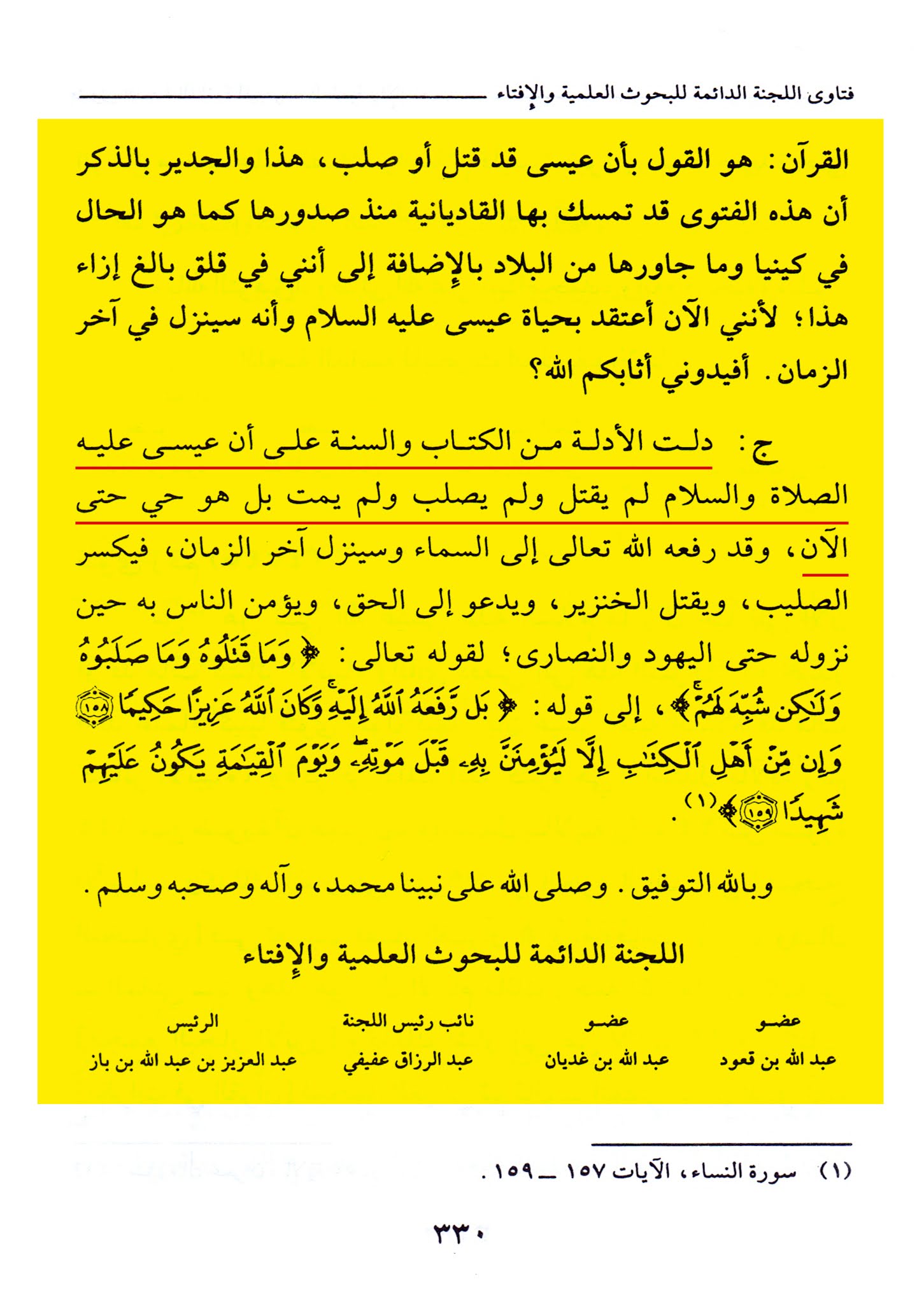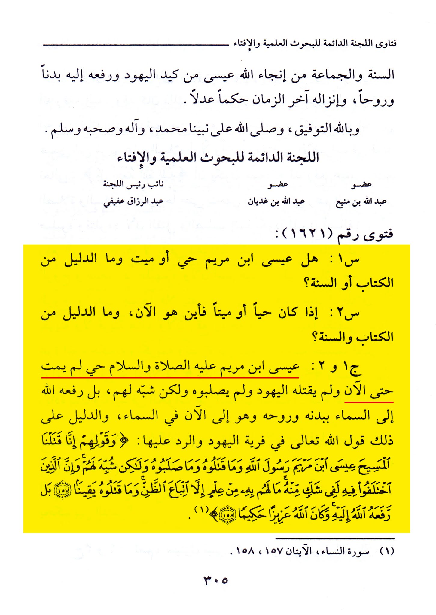 وللَّجنة الدّائمة للبحوث العلميّة والإفتاء في المملكة العربية السعودية والتي تمثّل زعامة الحركة الوهّابية كلماتٌ متعددة في أكثر من استفتاء تؤكّد ما قاله هؤلاء العلماء، وسيأتي ذكر أقوالهم ضمن الوثائق المصورة الآتية.