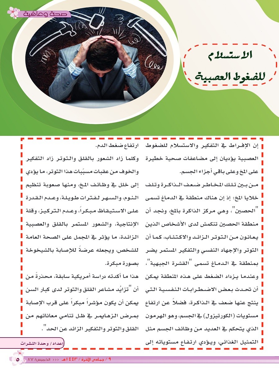 صحة وعافية.. الاستسلام للضغوط العصبية