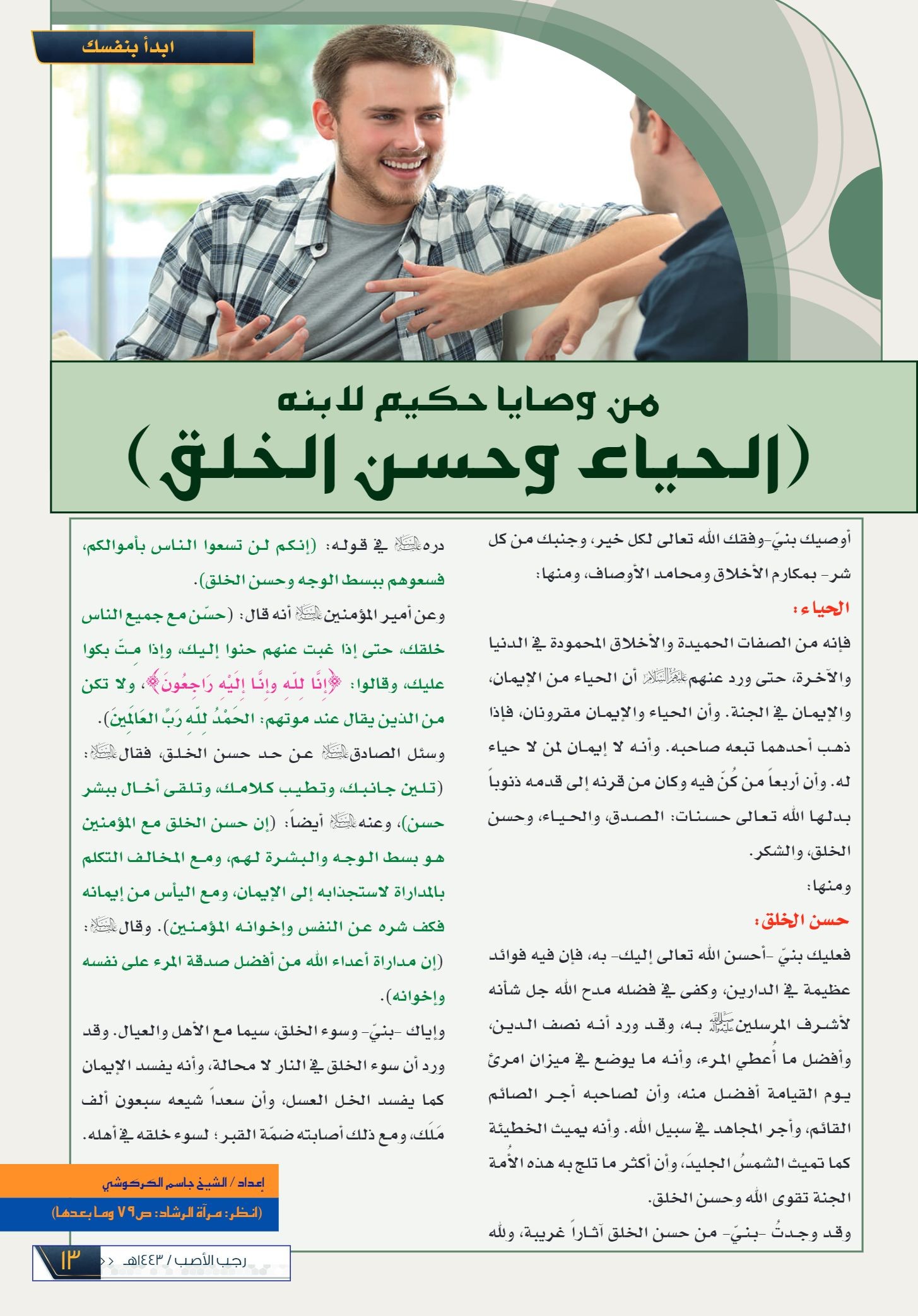 إبدأ بنفسك.. من وصايا حكيم لابنه: الحياء وحسن الخلق