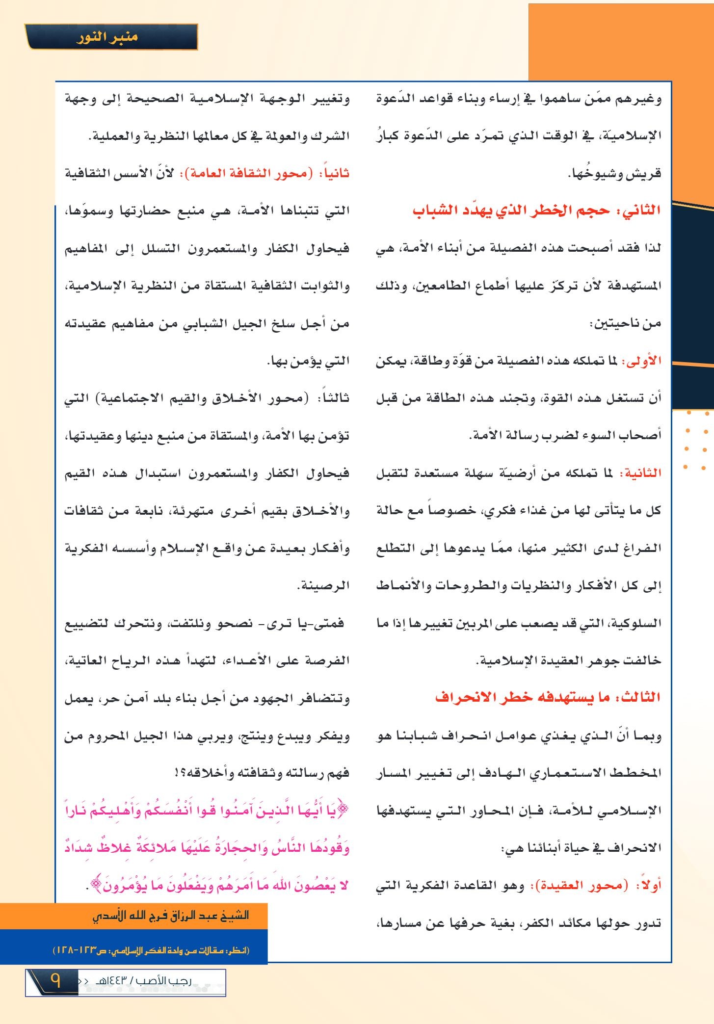 منبر النور.. الشباب وخطر الانحراف
