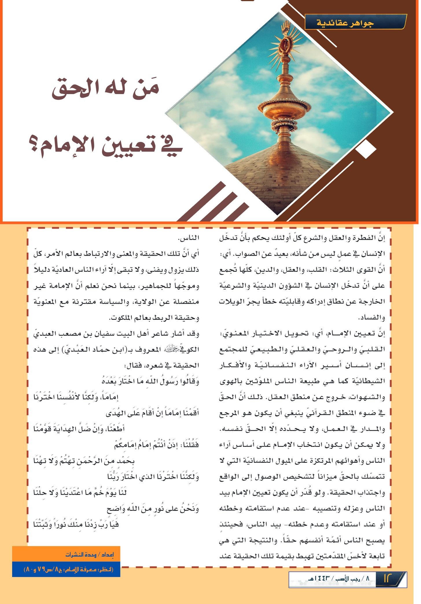جواهر عقائدية.. مَن له الحق في تعيين الإمام
