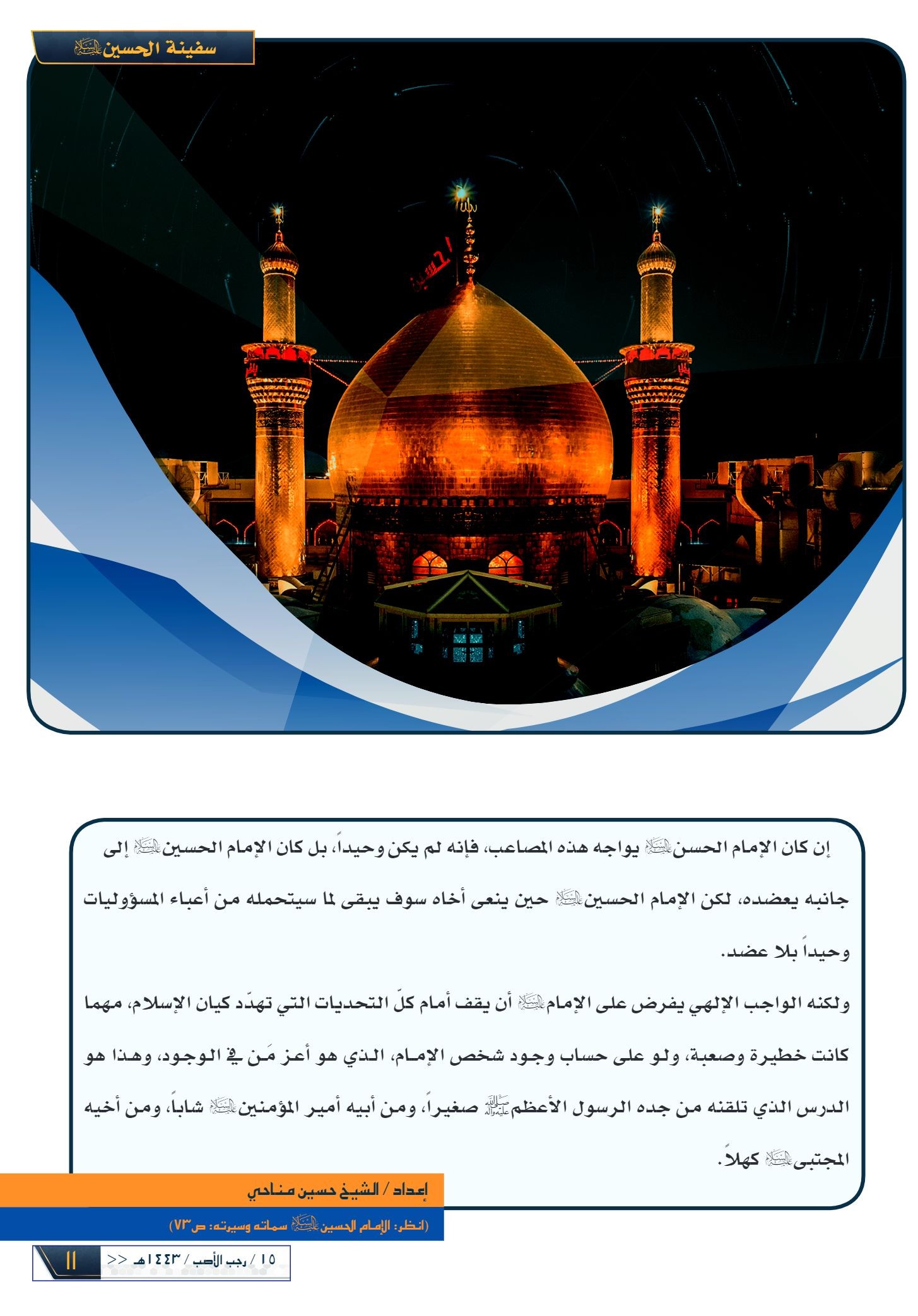 سفينة الحسين عليه السلام.. بين الحسن والحسين عليهما السلام