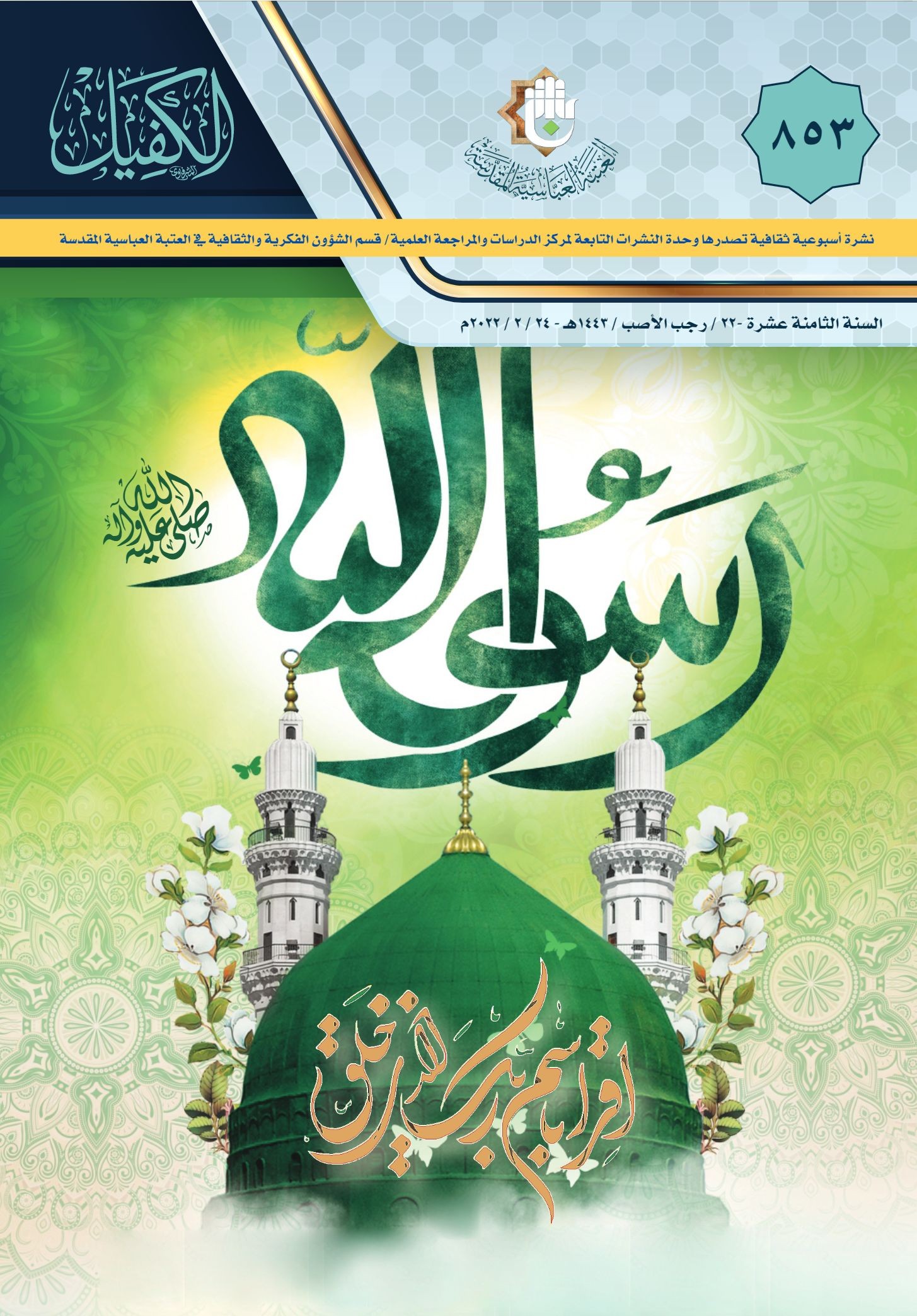 ببركة الله تعالى ومشيئته صدر اليوم الخميس: العدد الأسبوعي من نشرة الكفيل العدد ((853))، ونشرة الخميس العدد ((868))..