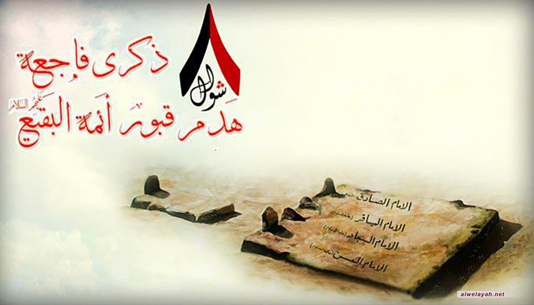 تصادف اليوم 8 شوال ذكرى هدم نظام آل سعود قبور ائمة البقيع بعد استيلائهم على المدينة المنورة في عام 1344 هـ بمساعدة بريطانيا وبهذه المناسبة الاليمة نوجّه أحر التعازي الى المسلمين كافة سنة وشيعة ونعرض مقتطفات حول هذه الجريمة النكراء.