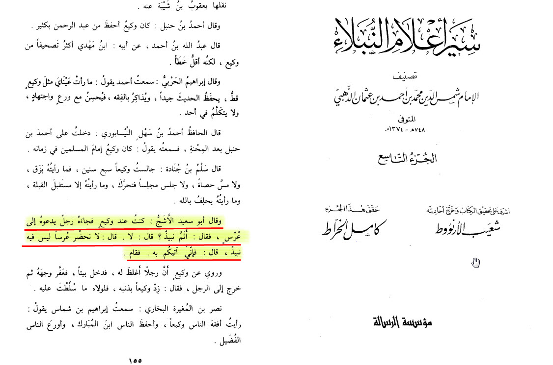 وكيع امام المسلمين كما يزعمون لكنه يشرب النبيذ !!