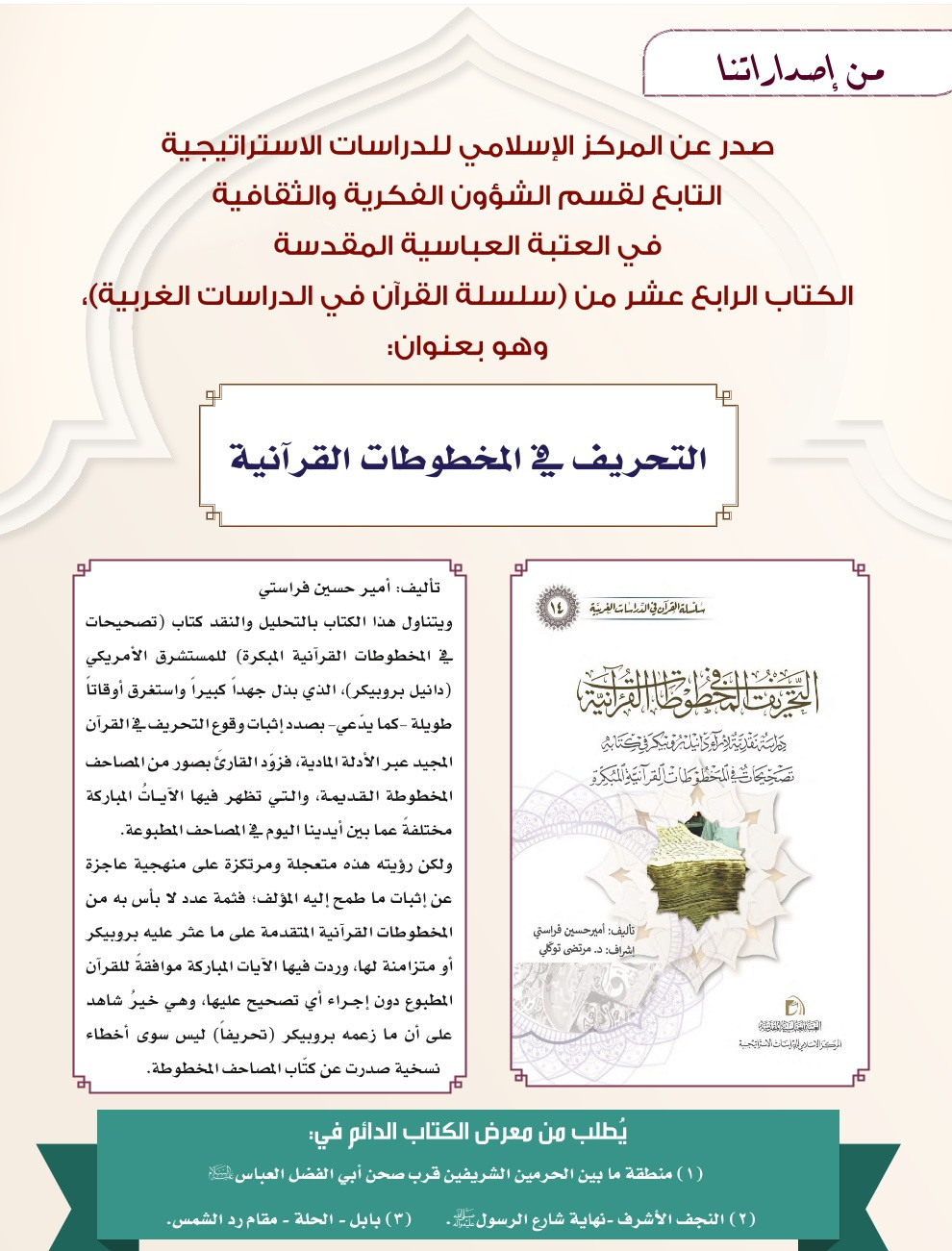 من إصدارات قسم الشؤون الفكرية.. التحريف في المخطوطات القرآنية.. تأليف: أمير حسين