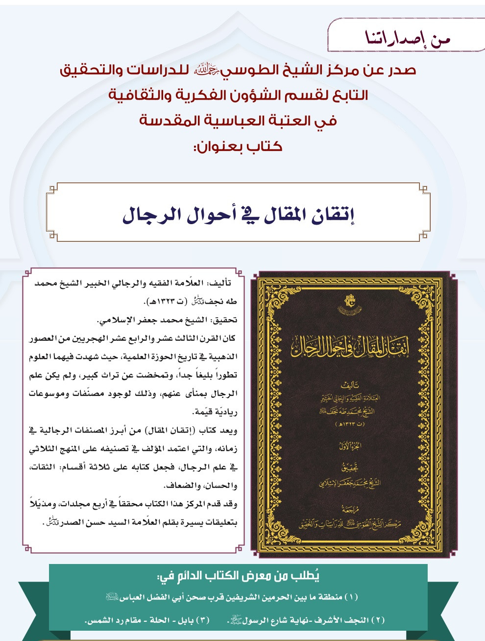 من إصدارات قسم الشؤون الفكرية والثقافية: إتقان المقال في أحوال الرجال