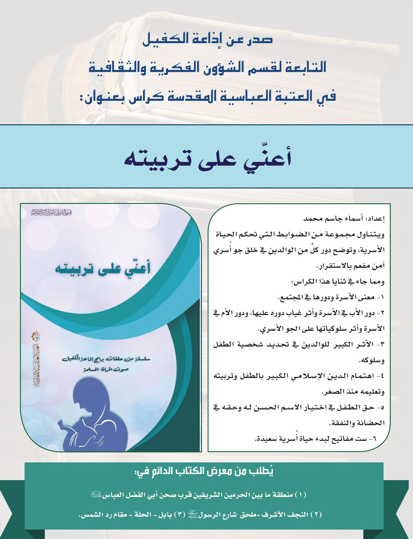 من إصدارات قسم الشؤون الفكرية والثقافية: كتاب: أعنّي على تربيته، تأليف: أسماء جاسم